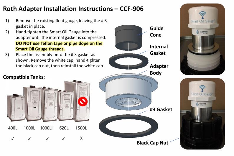 But most importantly, you must get the correct adapter for your smart oil gauge. We have two different Roth adapters. One is for the standard Smart Oil Gauge, and the other is for the Smart Oil Gauge Duo. If you have the standard model, you’ll want to get the CCF-906. But if you have the Duo, you’ll want to make sure you get the CCF-906DUO.